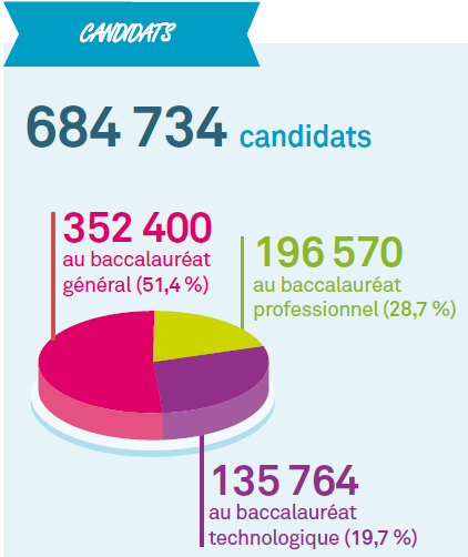 Le bac version 2015 sera passé par 684 734 candidats dont 51,4% sont issus des filières générales. Le plus jeune aura 13 ans et le sénior ... 93 ans !