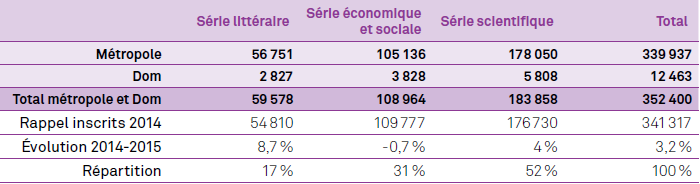 Cependant c'est la filière littéraire qui subit la plus forte évolution avec une augmentation de presque 9% par rapport à la session 2014.