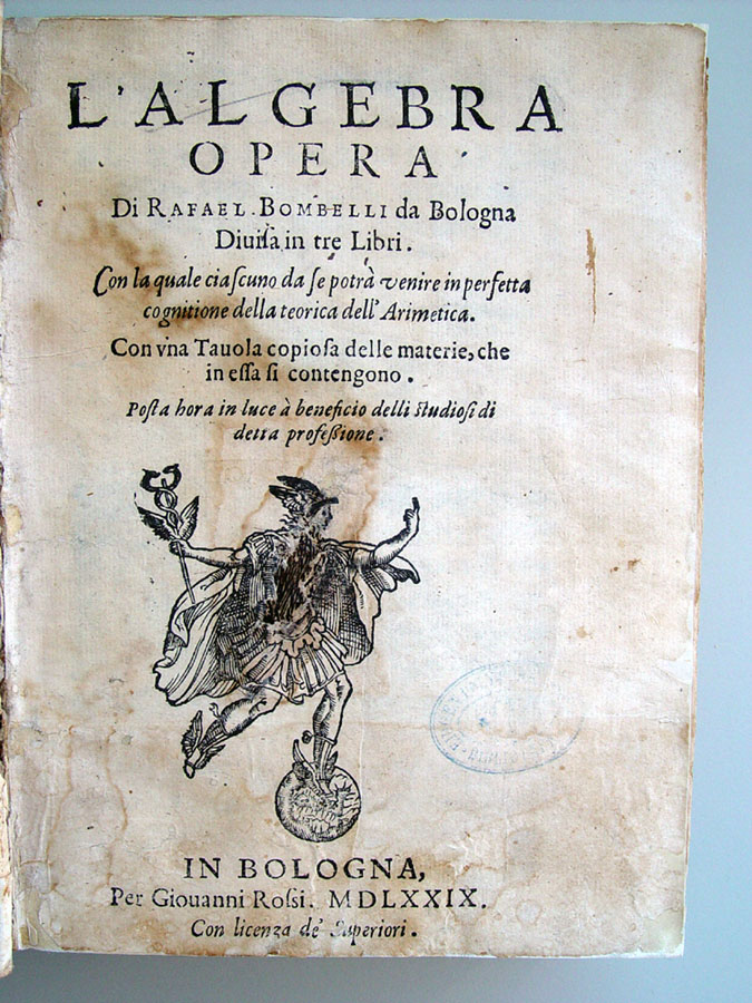 Les trois premiers livres de l'Algebra de Bombelli furent publiés en 1572, quelques mois avant sa mort.