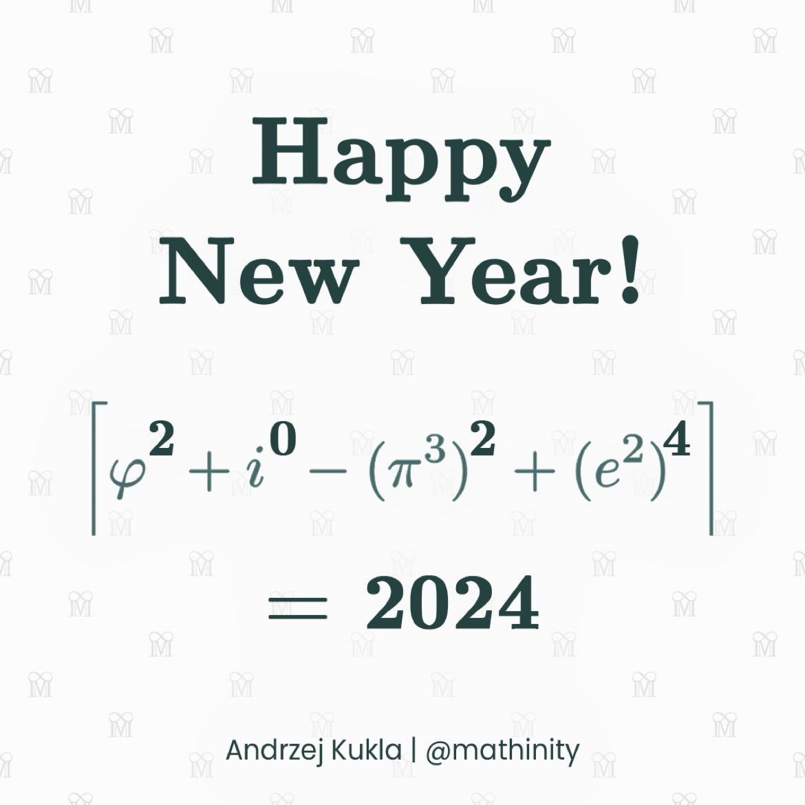 - On a donc : $$\phi^2+i^0-\left(\pi^3\right)^2+\left(e^2\right)^4=\phi^2+1- \pi^6+ e^8\approx 2023,19$$