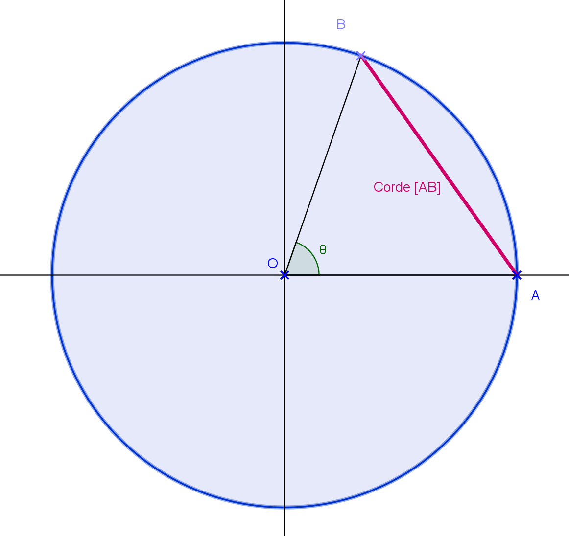 Montrons que la corde AB = 2 sin θ/2 Puisque le cercle est de rayon 1,