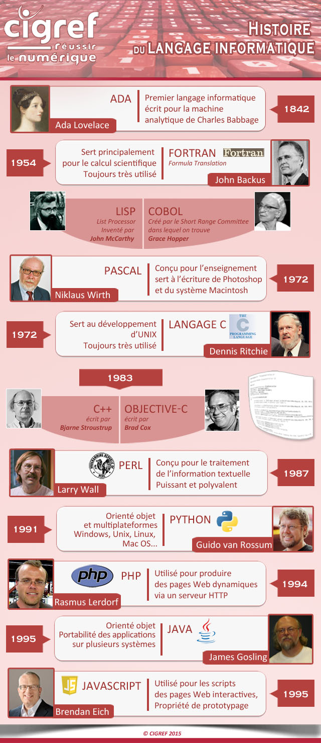 - Suivent ensuite : le Lisp, le Cobol et le Basic en 1964.