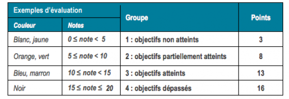 - Le barème est calculé en multipliant par 12 le total des points obtenus :