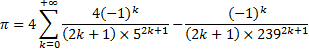 $${\pi \over 4}=1-{1\over 3}+{1\over 5}-{1\over 7}+{1\over 9}-{1\over 11}+{1\over 13}-\cdots$$