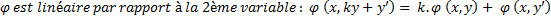 Attention, dans ce cas φ n’est pas linéaire par rapport à la 1ère place, elle est dite semi-linéaire par rapport à la 1ère place car on a :