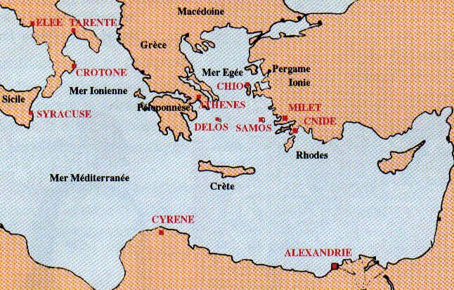 - En Ionie toute proche, il passa quelques années auprès de Thalès et de son élève Anaximandre (v. 610 BC - v. 546 BC).