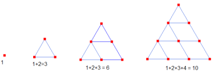 La figure classique est celle d'un triangle de quatre lignes tel que 1 + 2 + 3 + 4 = 10 points ou cailloux.