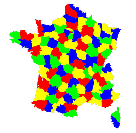 Ainsi, chacune des régions doit recevoir une couleur différente si les régions sont deux à deux adjacentes.