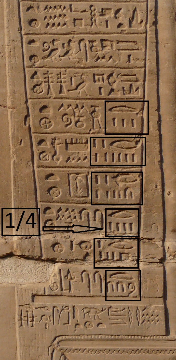 Par exemple pour \(\dfrac14\) : Voir aussi sur le bas relief de temple de Kôm Ombo ci-dessous.