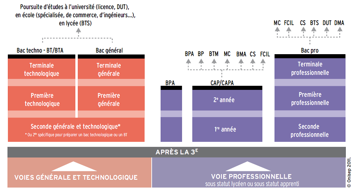 Plusieurs choix d'orientation s'offrent aux élèves après la troisième :